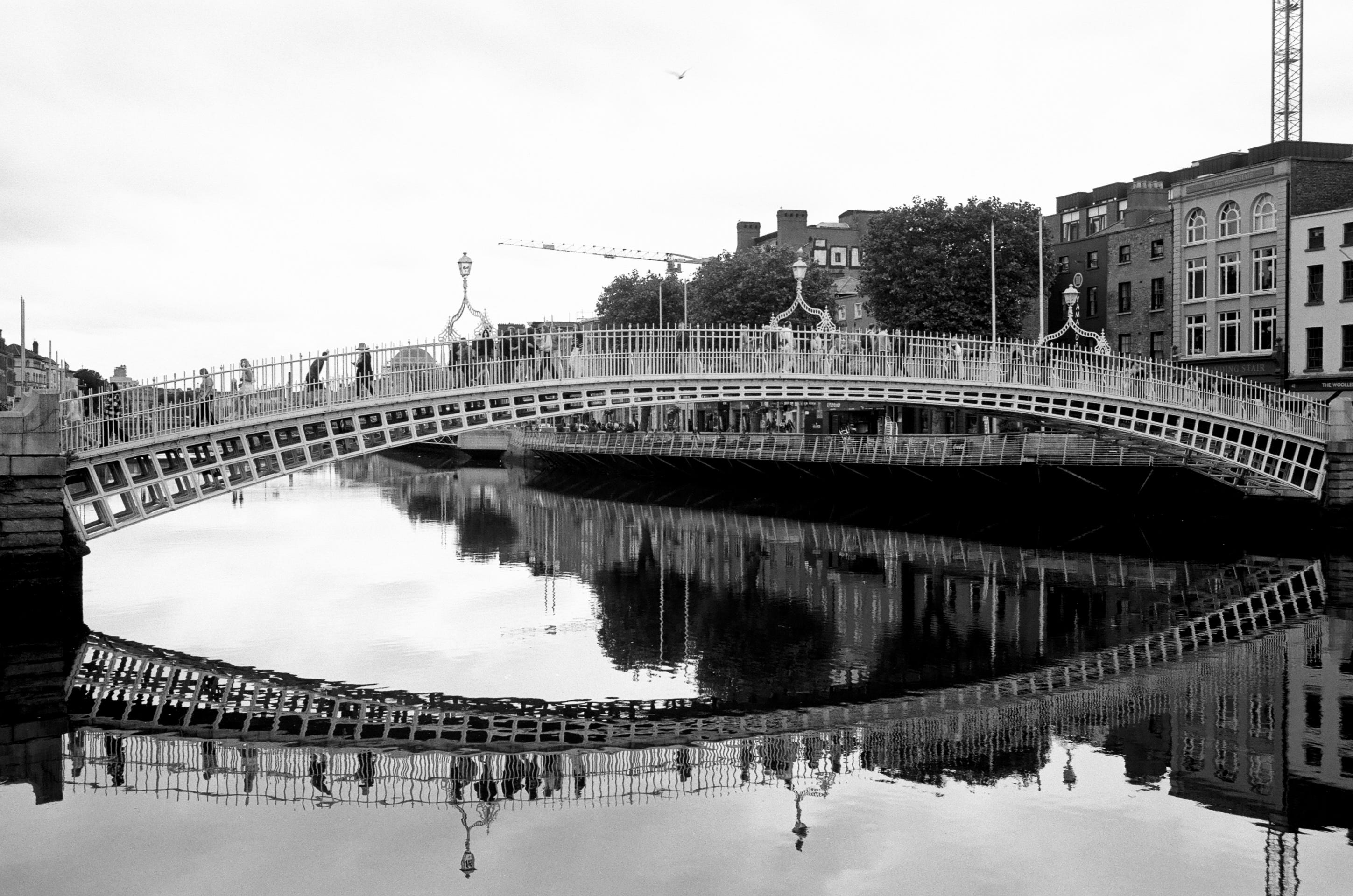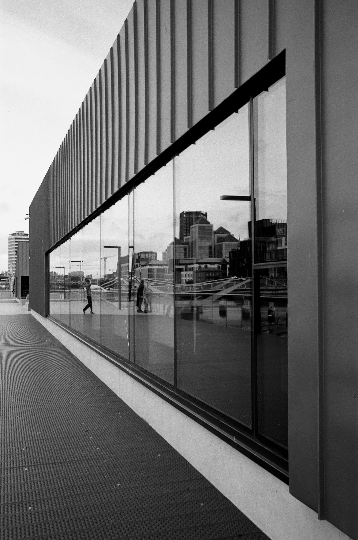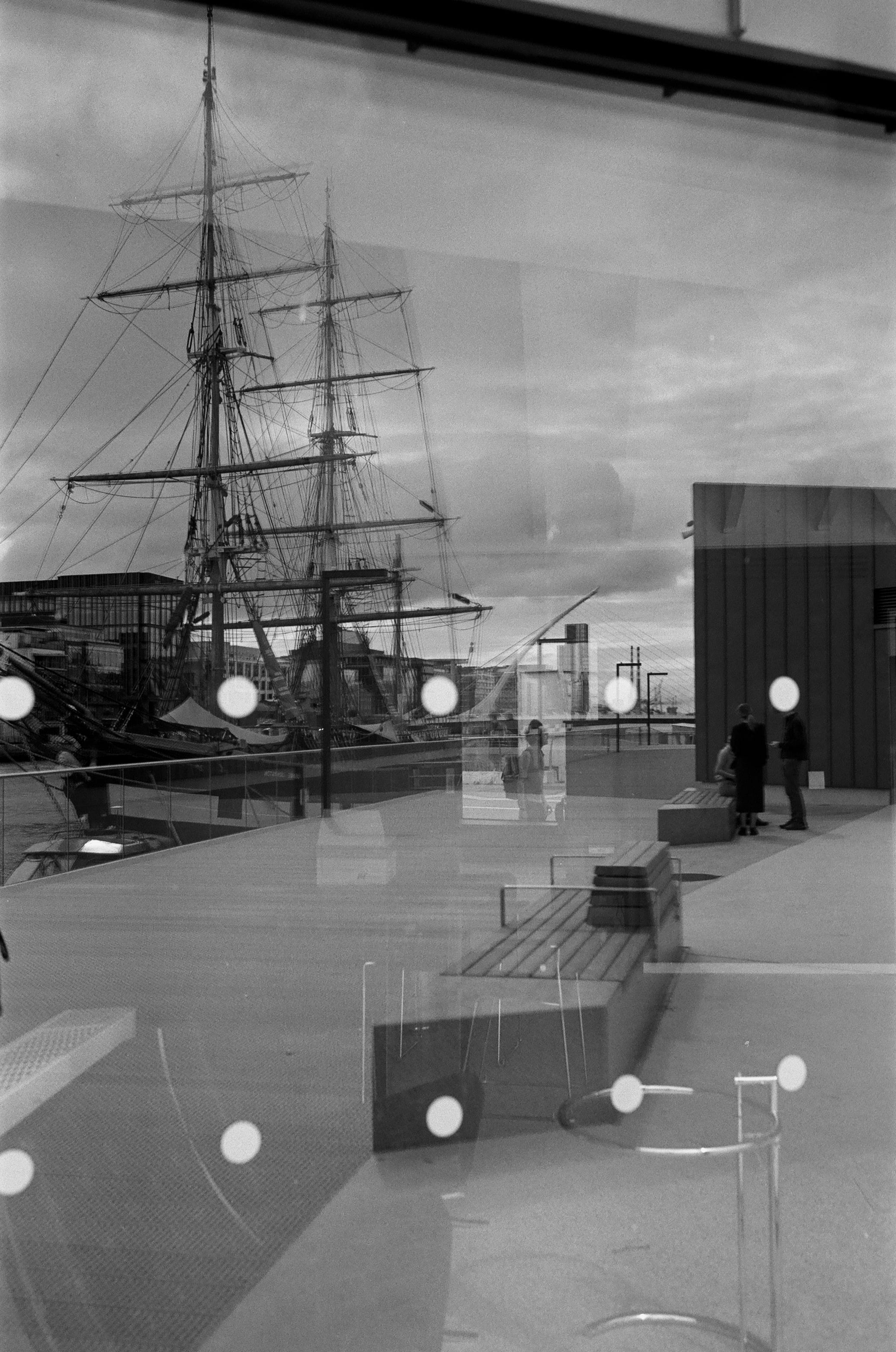 The boat in the reflection is the Jeanie Johnston, a museum commemorating emigrants who fled the famine.