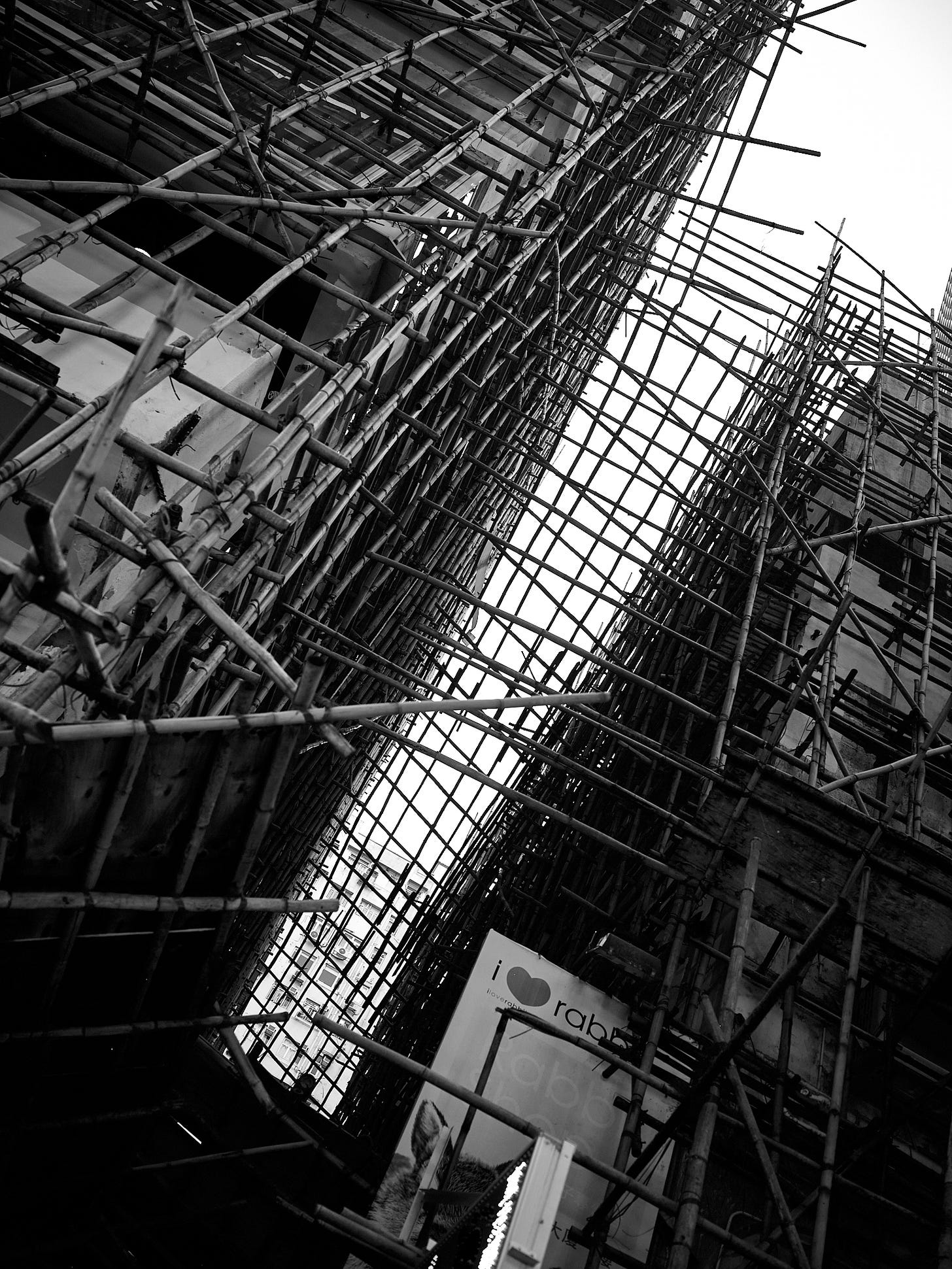 My favorite: bamboo (!) scaffolding! Never heard of such a thing.