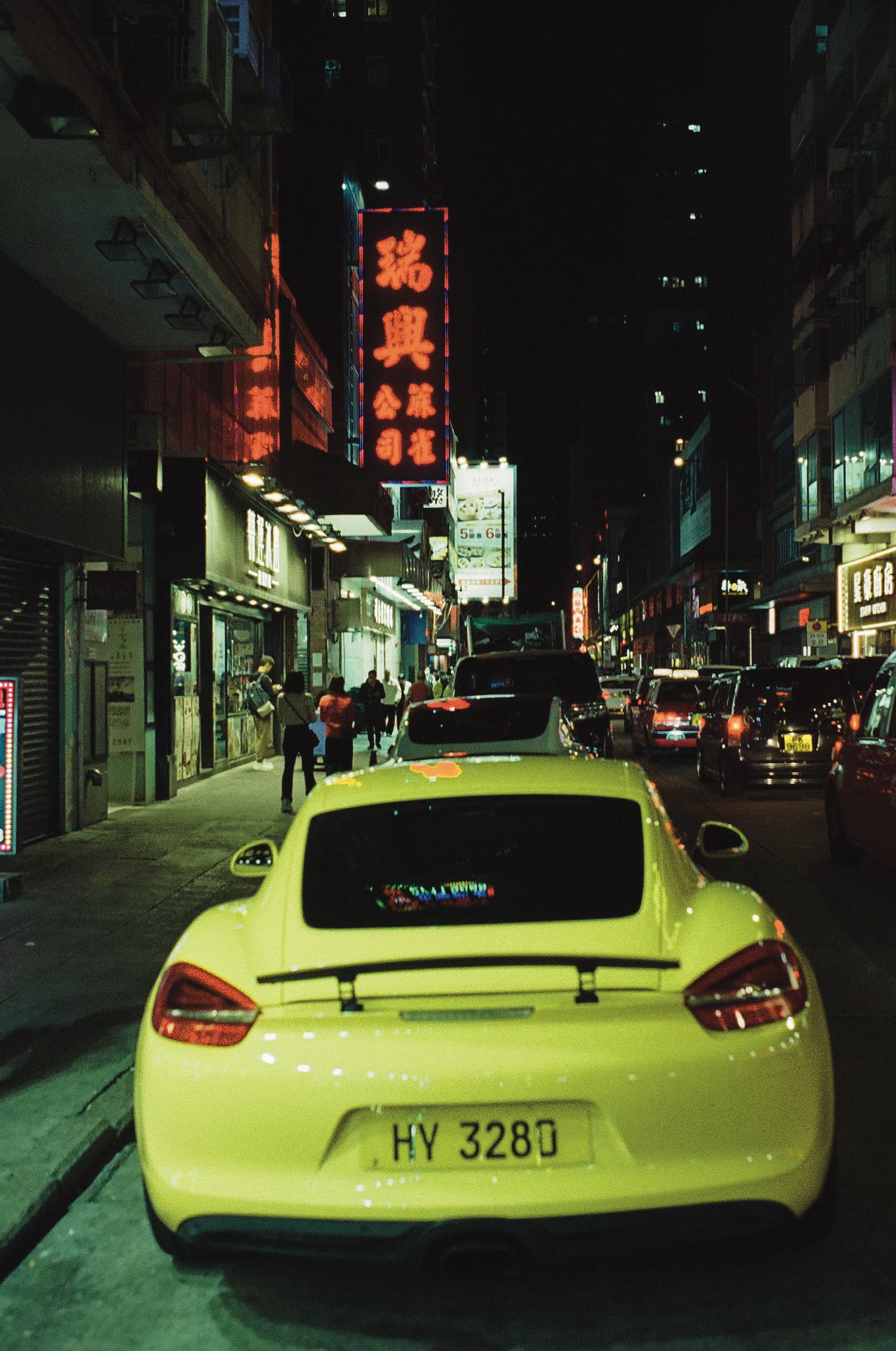 The same mahjong parlour as the last one, with a bright yellow Porsche.