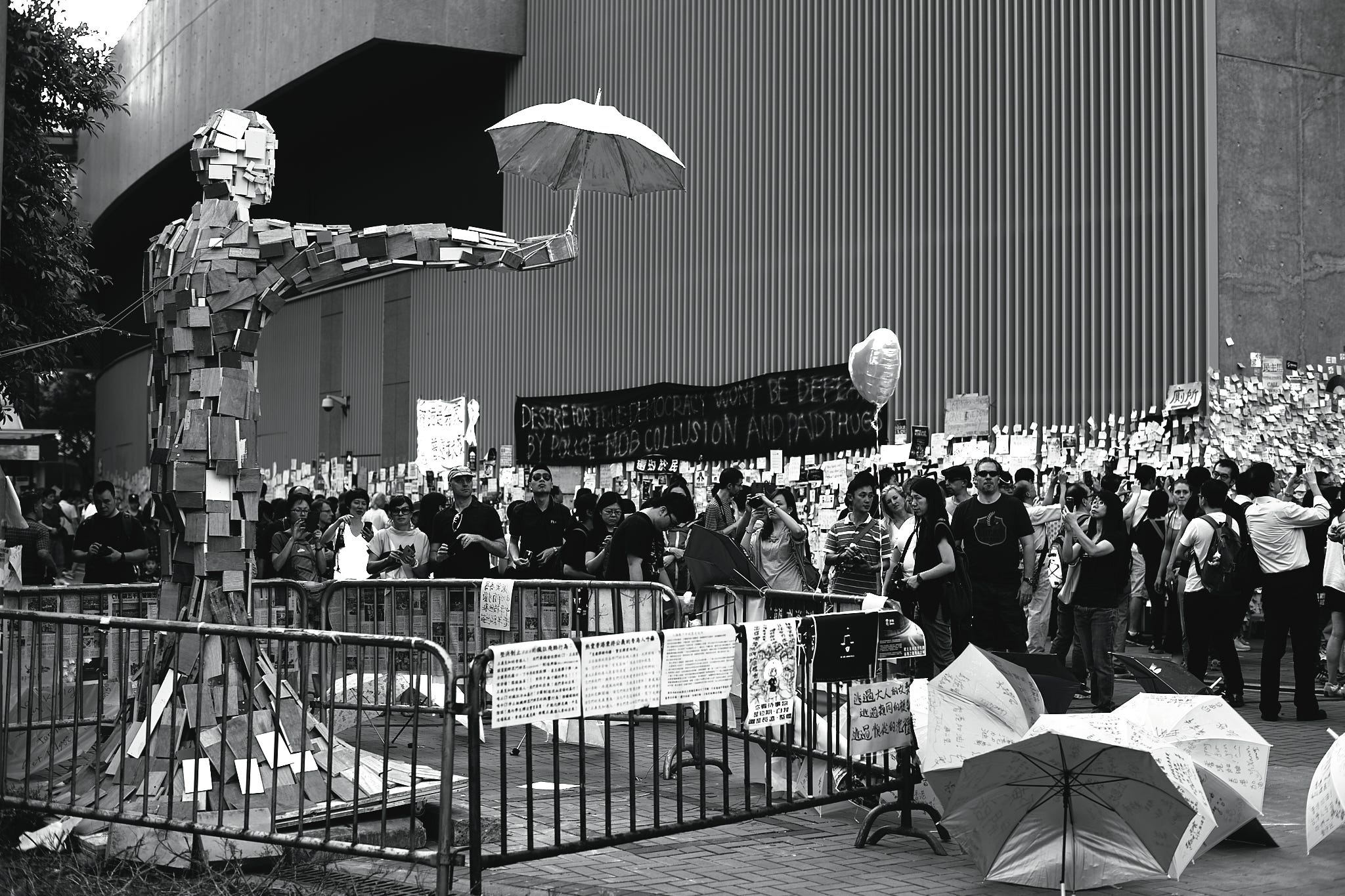Side note: an outdoor staircase outside the government HQ was covered with post-it notes supporting the protest, and it was named the Lennon Wall. The night before the last blockade was removed, all the post-it notes and artworks were collected and archived.