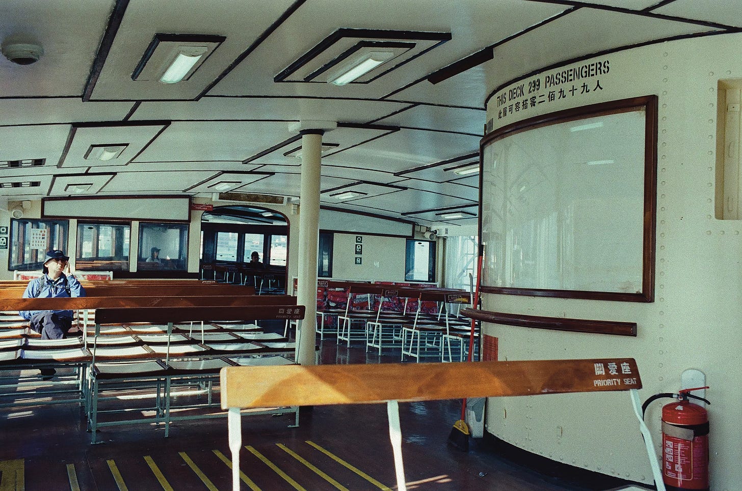 Star Ferry interior. The capacity of this particular one is a very specific 299.