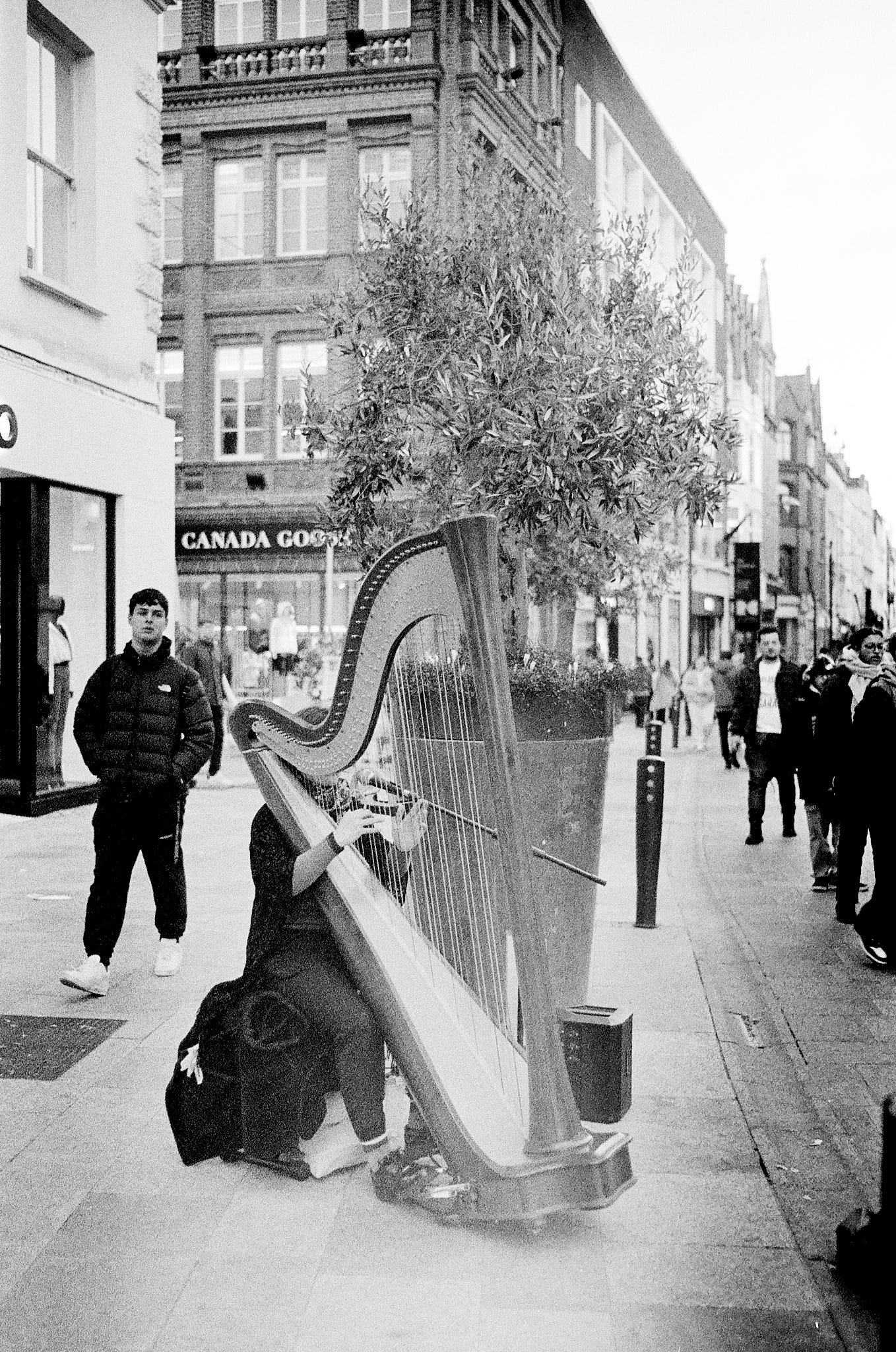 First time I’d seen harp busking. There’s another busker who trolleys his grand piano every time. I admire such dedication.