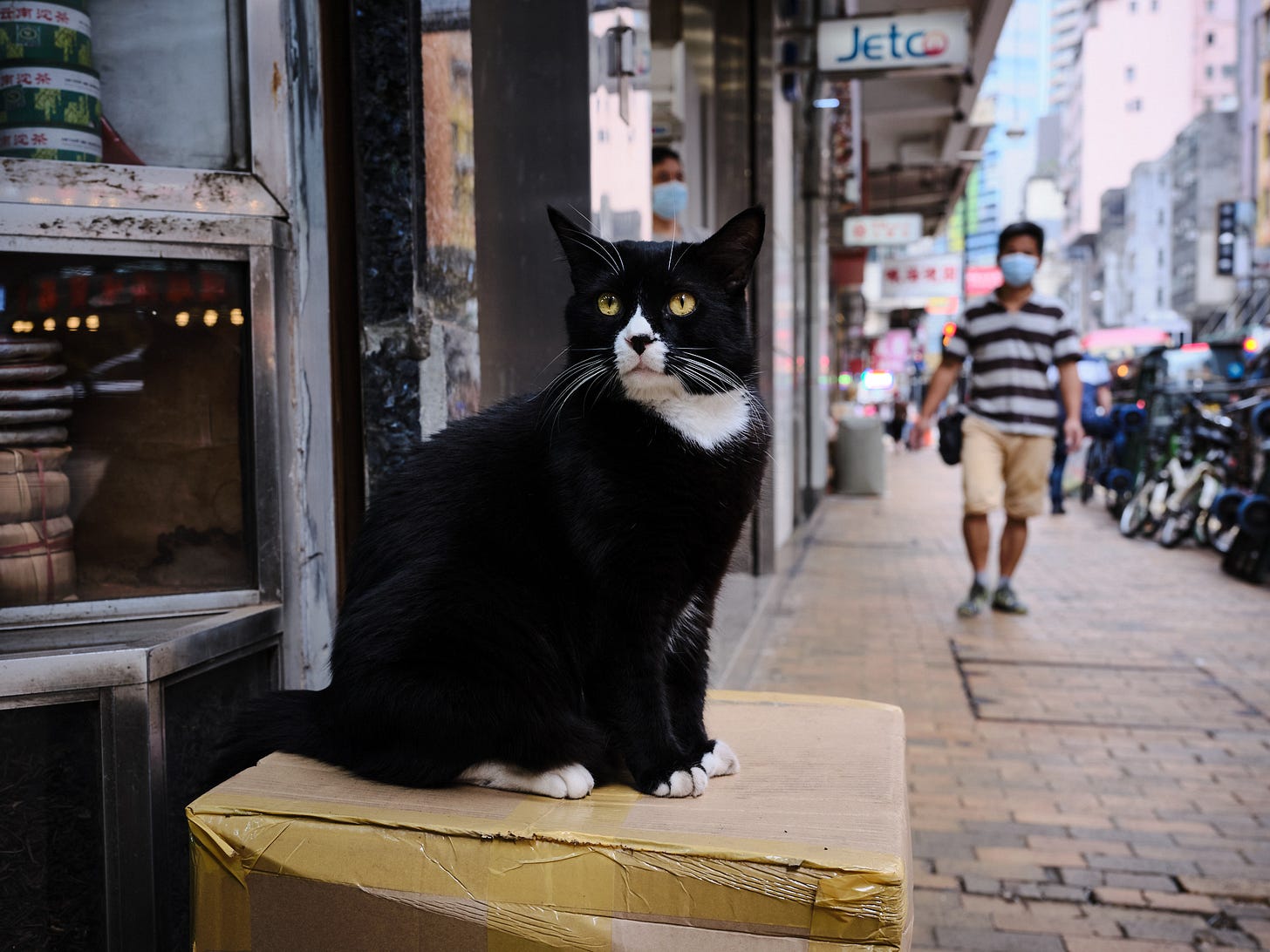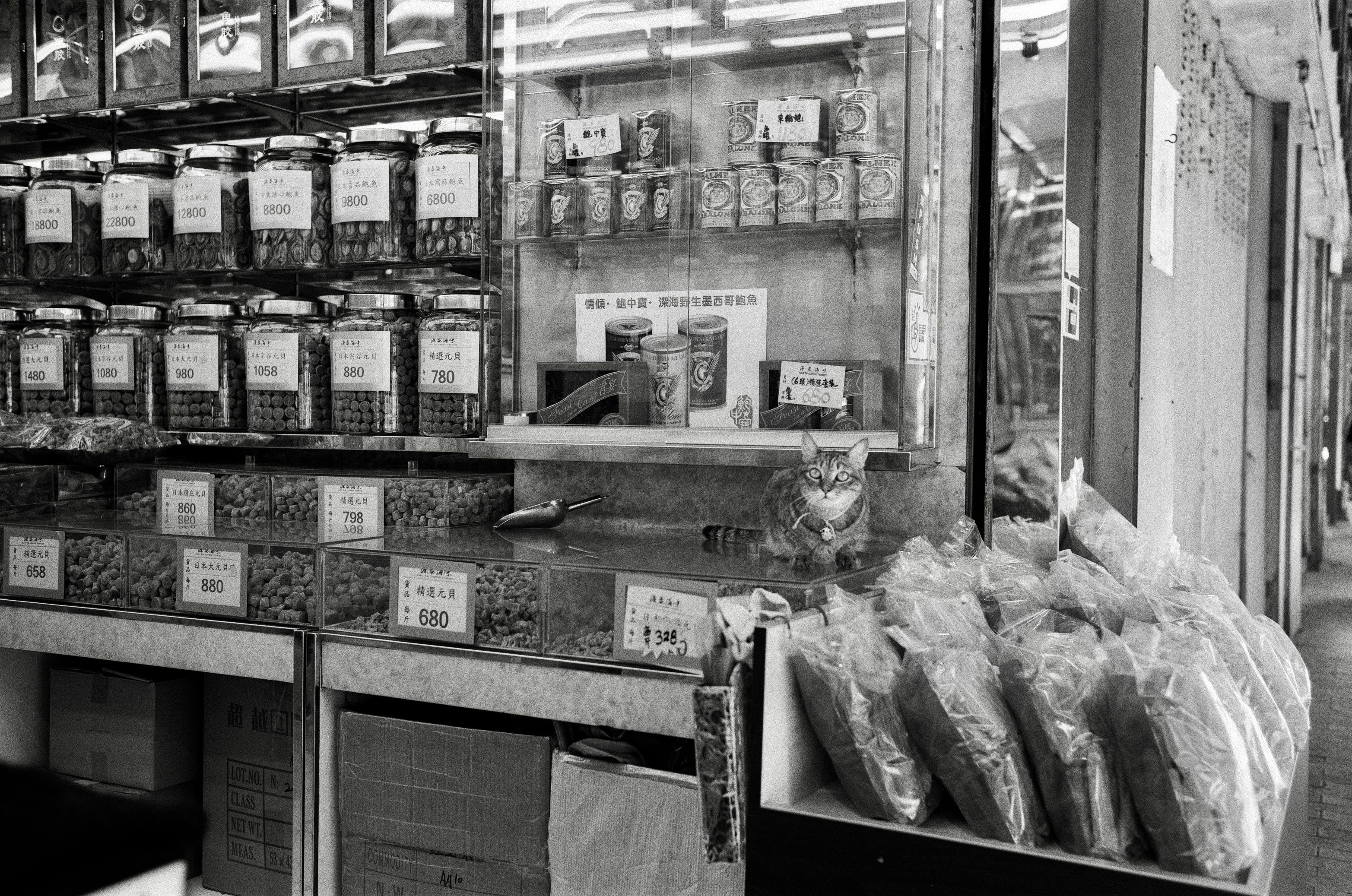 Anyway, cats are the best. They are beautiful, smart, and cool. And if you are as superstitious as people in some East Asian countries, you’d believe they’ll bring good fortune to your businesses, even when you are in the dried seafood business. Hong Kong! I miss taking a walk on Des Voeux Road West, stopping by those seafood shops to check out these cats. Here are some of the photos: