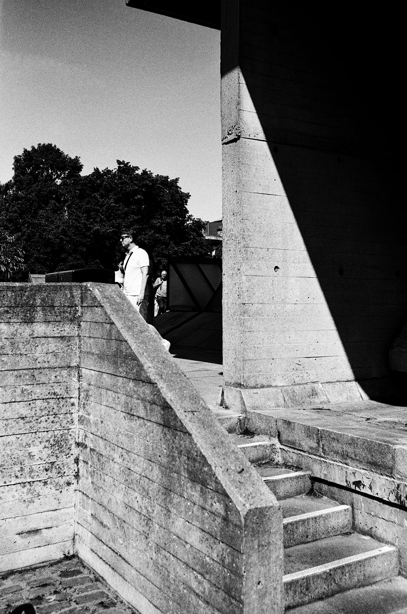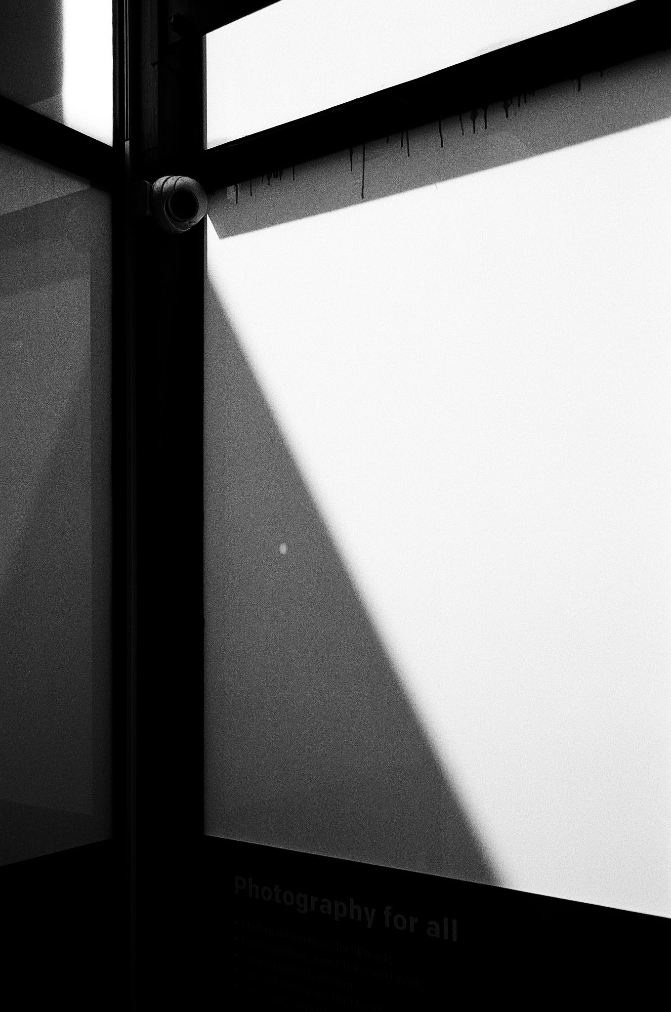Can't really comment on today's movies in your post (I've seen American psycho, but a very long time ago), but the photos, and more specifically, your comments about them, make me wonder why you seem to have doubts about the meaning of your photos and revealing that meaning. I absolutely understand your comment on the 'two metres' image, but as you say yourself, there is no obligation to justify each shot. I like the photo with the shadow in the upper right corner because of the somewhat confusing lines in the foreground, competing for attention with the person walking by. Whatever feels right for you to say when presenting photos, can only help us who look at them more aware. I've used Pan F relatively rarely, but I remember using an orange filter. Regarding the use of a ISO 50 panchromatic film: I used to like the lower sensitivity negative films because of their rendering of fine detail, but I preferred Kodak panatomic X and Agfapan 25 in that respect, especially the Agfa. I don't even know if it's still on the market.