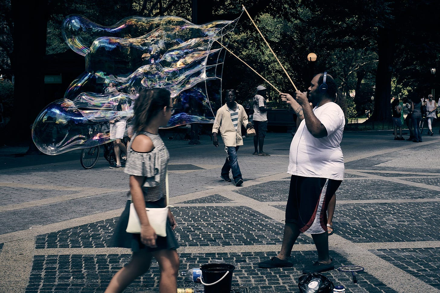 Bubble man outside Central Park.