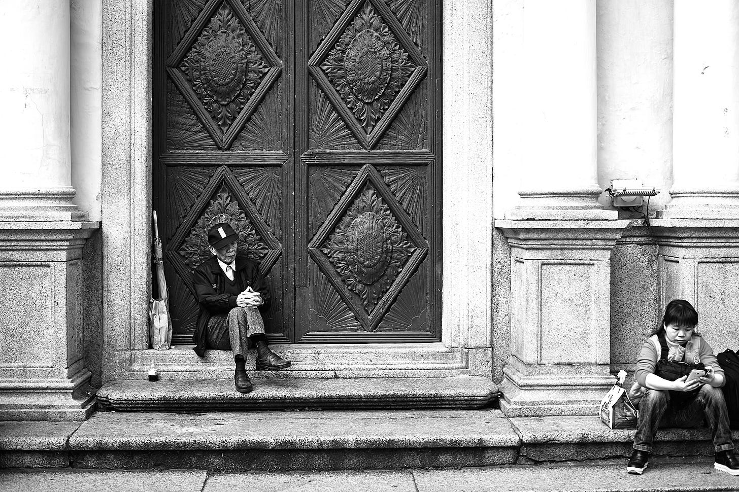On the steps of a church, Macau.