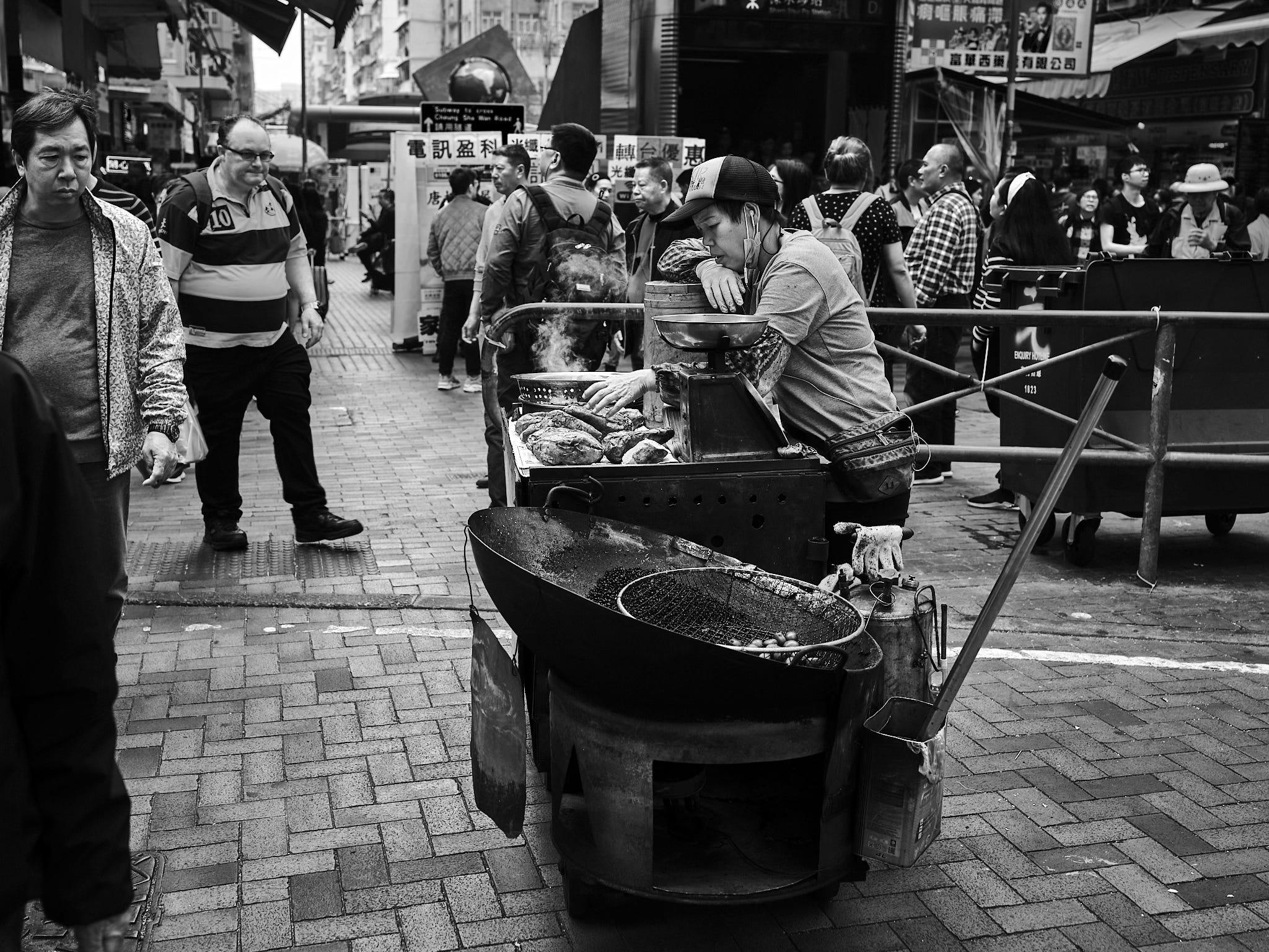 Sweet potato and chestnut vendor, Hong Kong.