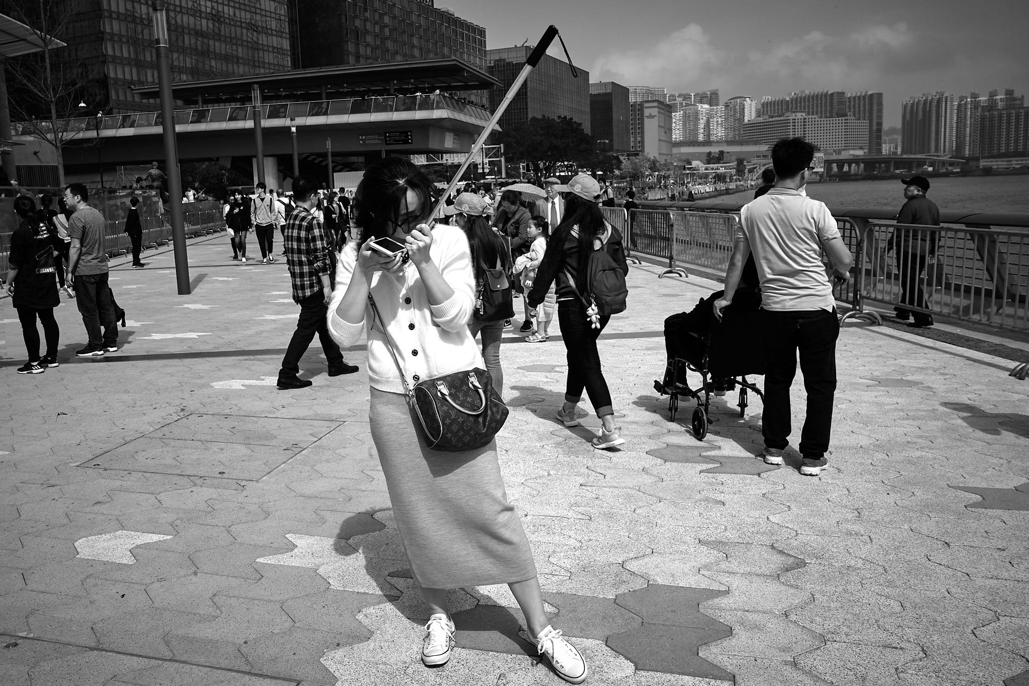 User manual on how to use a phone on a selfie stick, Hong Kong.